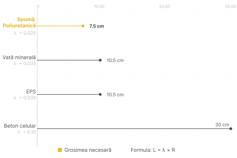 Ai nevoie de mai puțină grosime pentru aceeași izolație: spuma poliuretanică reduce